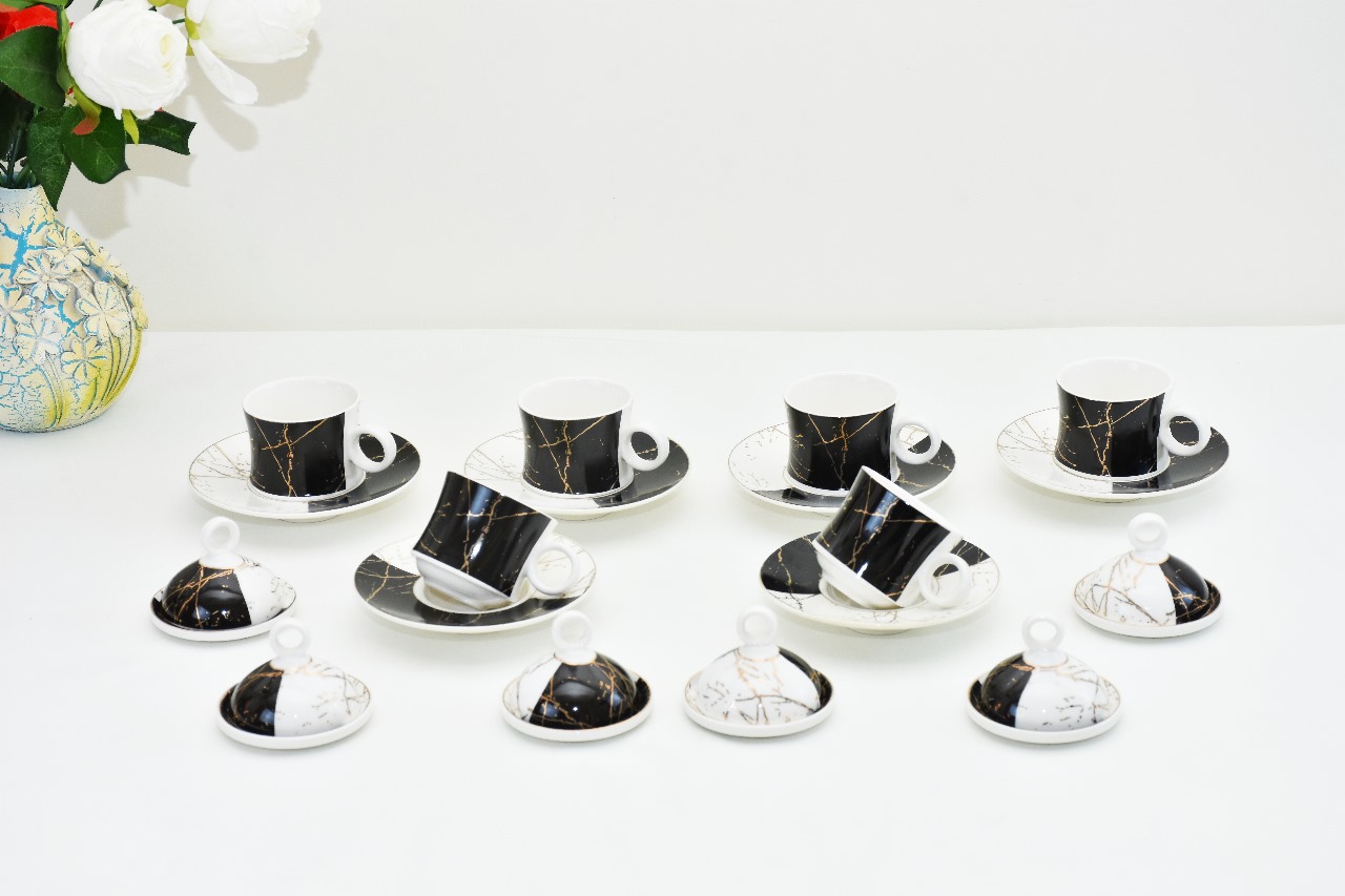 طقم قهوة بورسلين مكون من 24 قطعة لتقديم القهوة والتمر